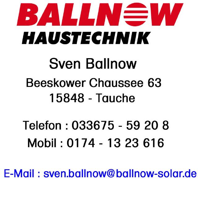 Wir - die Firma Ballnow - sind ein mittelständisches Unternehmen in Tauche (Brandenburg). Seit 1996 arbeiten wir im Bereich der Haustechnik und können auf über 20 Jahren Kompetenz und Erfahrung auf diesem Gebiet zurückgreifen.